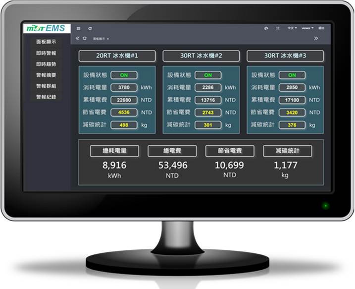 極速晶圓節電控制加上IOT遠端即時顯示,可立即檢視節電效果,了解運作期間的節電度數及碳減排量。當設備超載或發生故障時,即發送警報通知,讓管理人員盡速處理,以避免系統超載或故障。