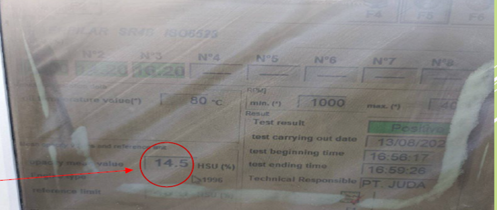 依據「柴油汽車黑煙牌不透光率檢驗方法及程序」判別不透光率檢驗門檻值,並依據「移動污染源空氣污染物排放標準」判定檢測結果。出廠年月於2012年1月1日以後門檻值為0.3m-¹,排放標準為0.6m-¹。